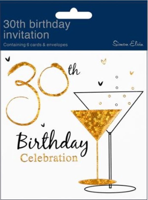 30th Birthday Invitation Display Pack - 6 Cards & Envelopes