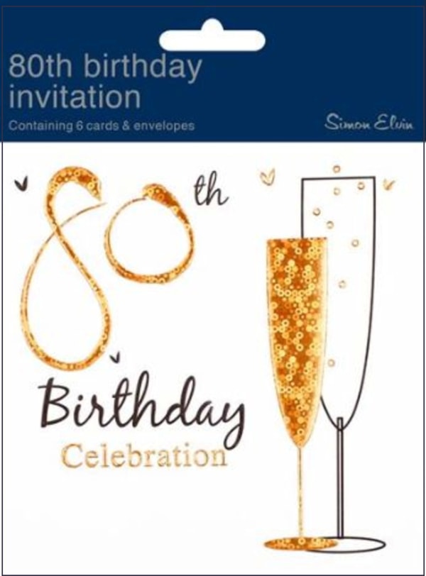 80th Birthday Invitation Display Pack - 6 Cards & Envelopes